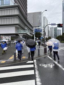 当日はあいにくの雨模様となりましたが、横浜マラソンを走る方々や応援される皆様に、気持ちよく過ごしていただけるよう、毎年この時期に清掃活動を行っています。
